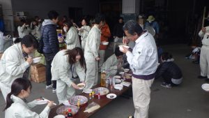 河川敷清掃終了後には、社員でお昼に芋煮をいただきました。